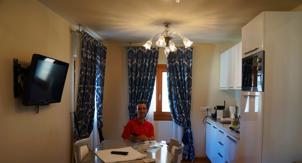 We thought our hotel would be nice, but you are never sure until you’re there. It turned out to be wonderful! It was an apartment with a room upstairs, a kitchen, and a living room. It was in fantastic condition, was on a quiet street, and overlooked a bridge and plaza.